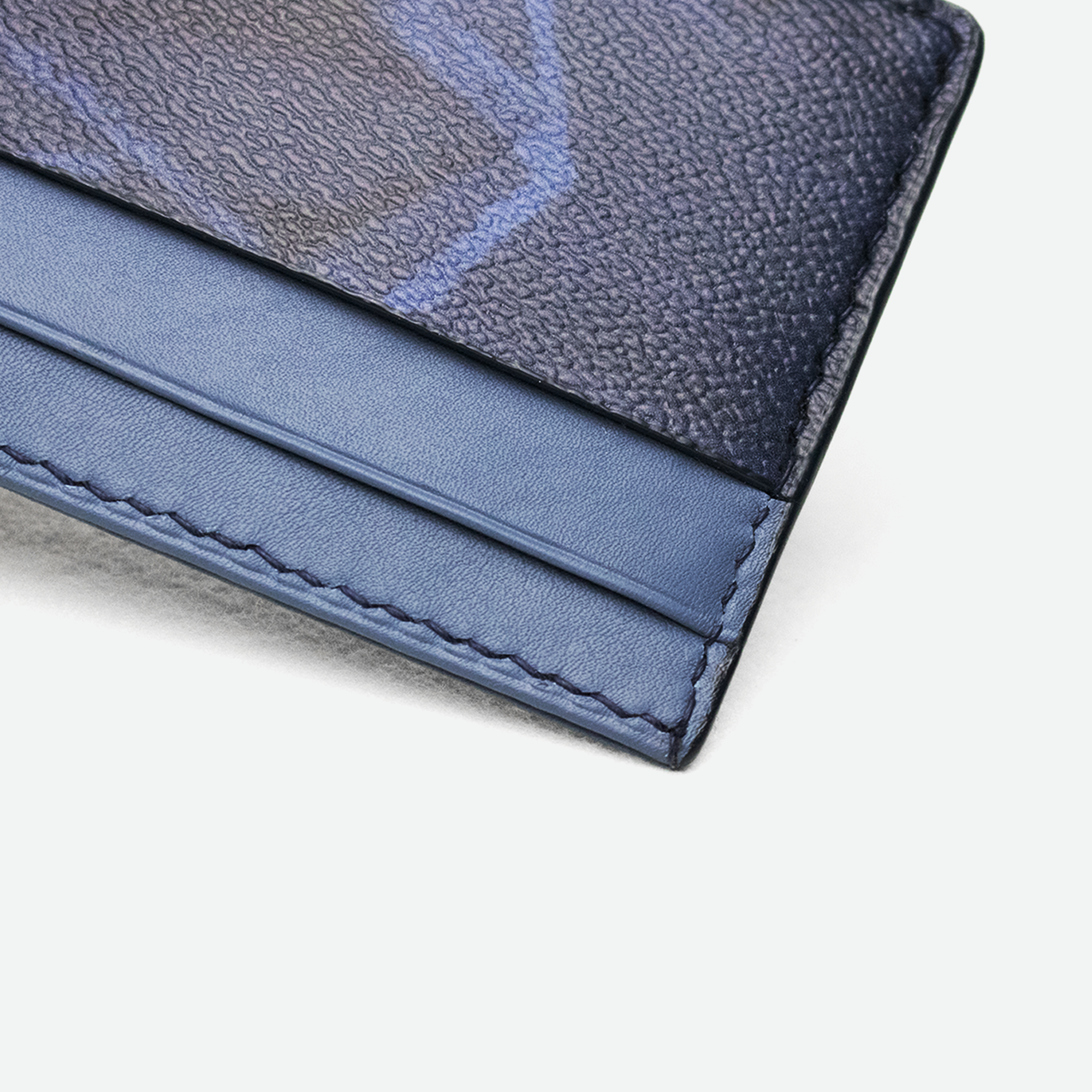 Façonné avec soin par nos artisans d'exception, cet accessoire devient le compagnon qui vous suit partout. Habillé d'une toile enduite, aux nuances azurées, ce porte-cartes est un témoin des merveilles gelées de la nature. Petit et compact, cette pièce deviendra le gardien de vos essentiels.