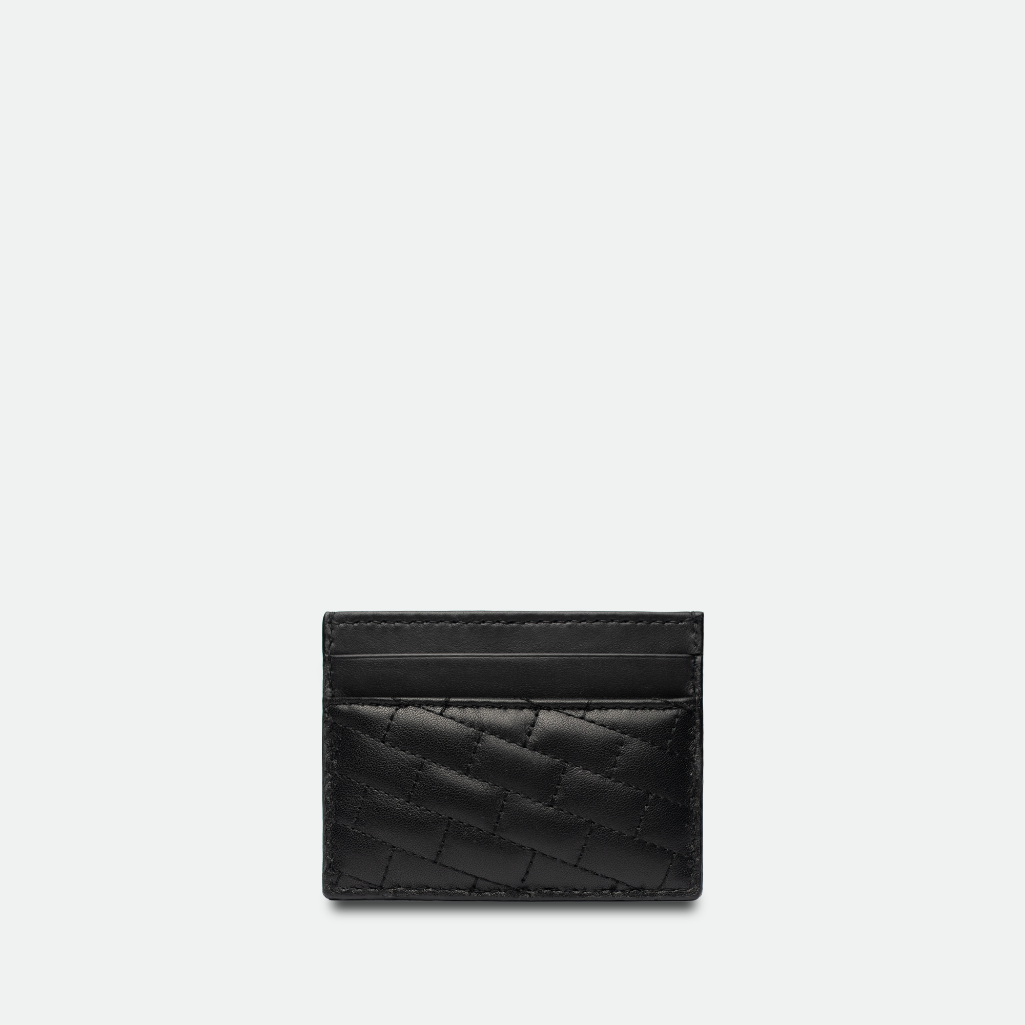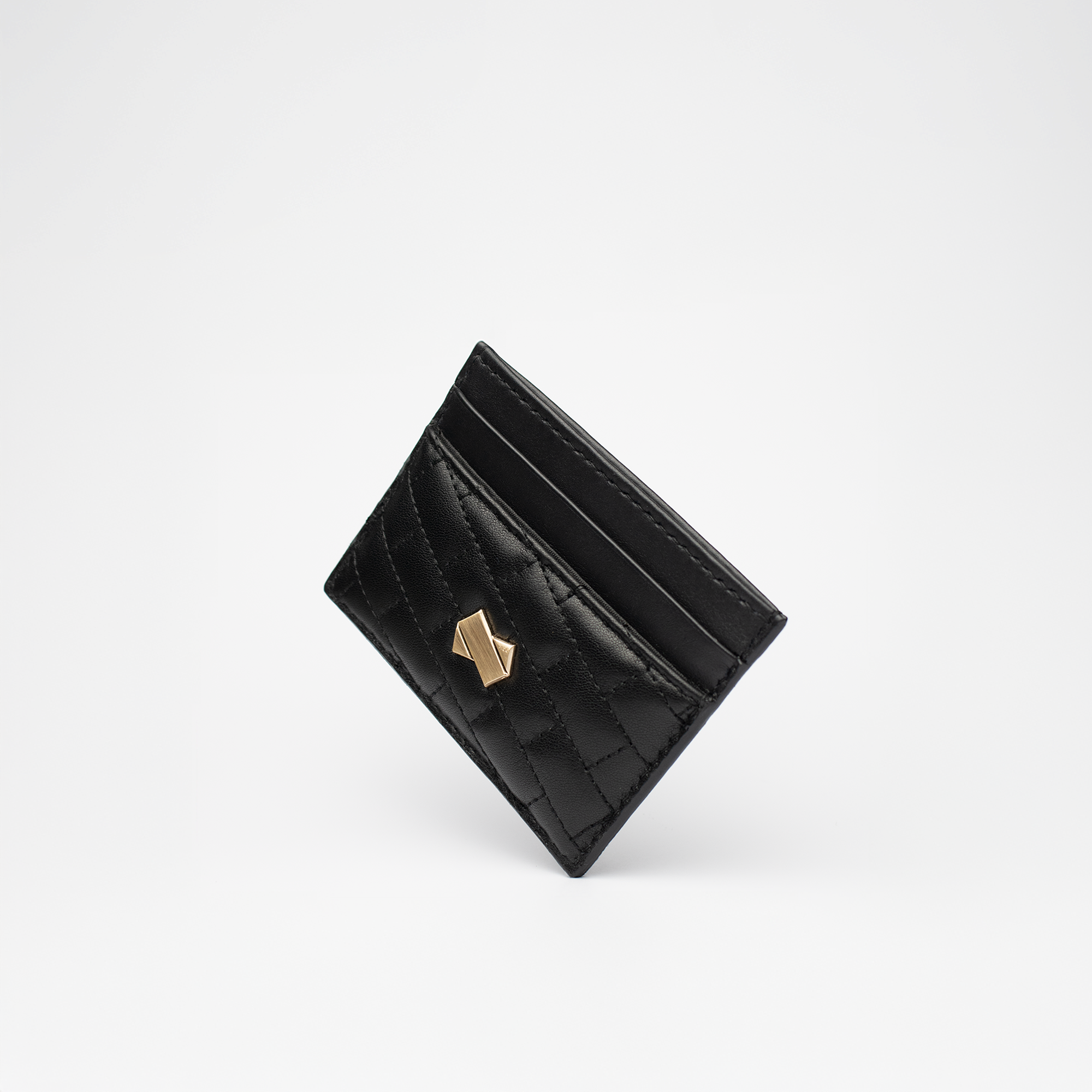 Plus de 121 points de couture apposés à la main pour ce porte-cartes femme en cuir noir.