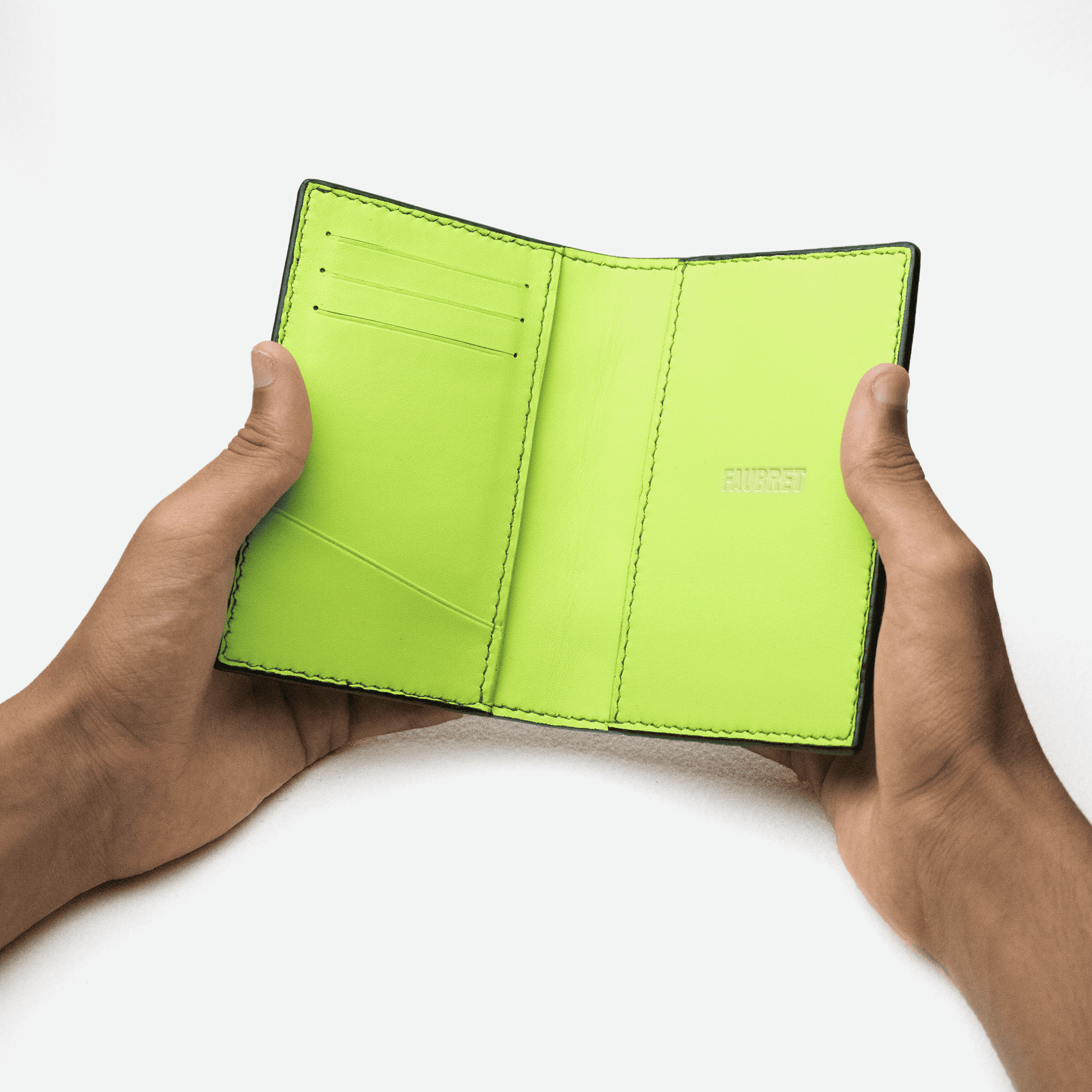 Faubret est une maison de maroquinerie de luxe spécialisée dans la petite maroquinerie, en particulier les porte-cartes. Ce qui nous distingue, c’est notre fabrication artisanale et notre approche moderne du luxe. Chaque pièce est réalisée à la commande dans notre atelier, avec une attention méticuleuse aux détails. Nous incarnons également l’esprit des jeunes maisons prometteuses, en proposant des créations audacieuses et intemporelles adaptées à votre style.